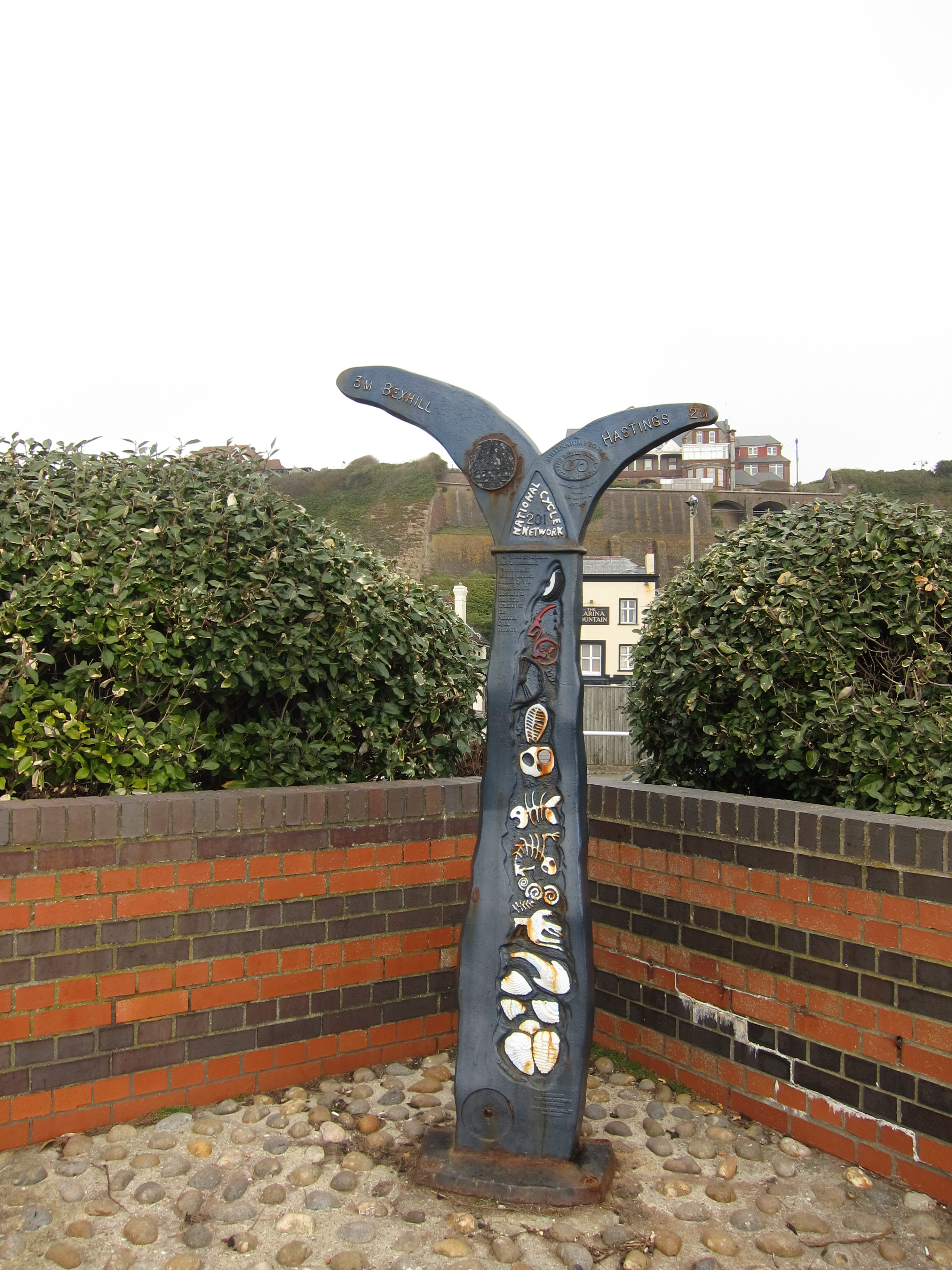The train arrived at Hastings within the half hour, and, allowing for a detour to buy replacement gloves (although, fortunately, my old ones had been rescued and tucked into the ticket vending machine at Eastbourne when Bridget kindly went to look for them) I started walking at just on 1pm. Hastings is not hugely exciting, and its adjacent suburb St Leonard’s is positively depressing – lots of youngish men hanging about with the whiff of illegal substances hovering over them.