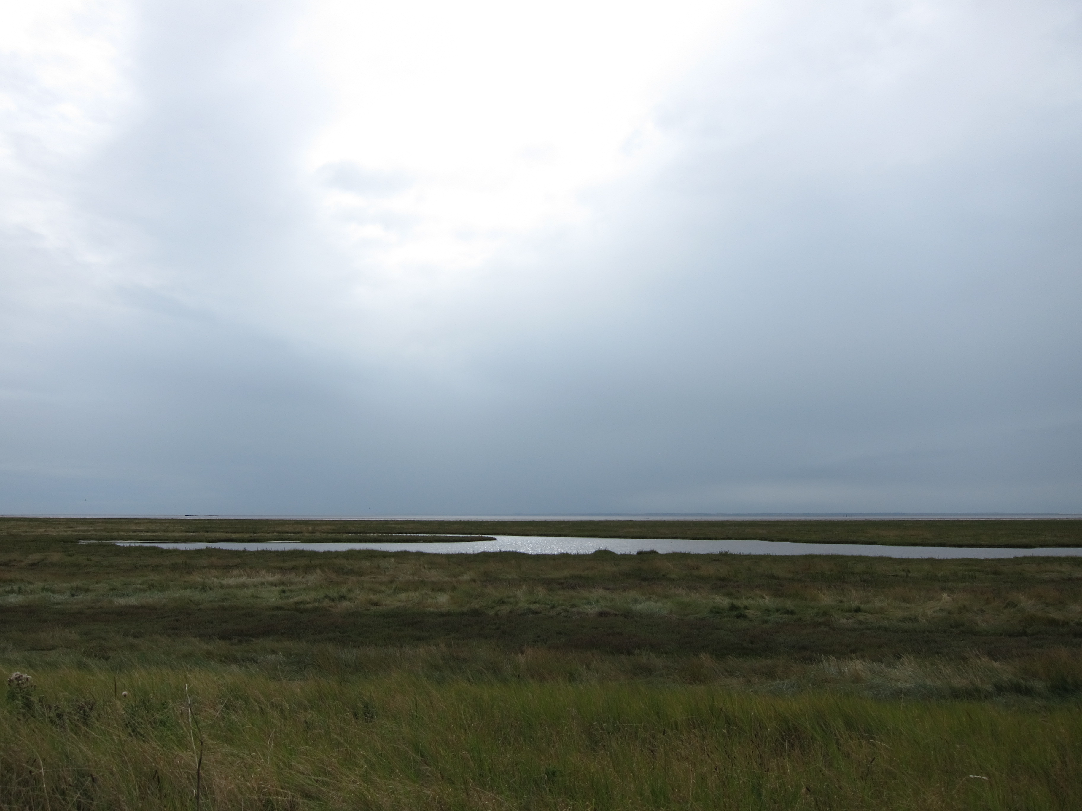 This morning, I drove down to Gibraltar Point to pick up the path opposite the frustrating locked foot-bridge. For the first time since turning inland south of Hunstanton, I could actually catch a glimpse of the open sea. Not for long however, as the salt marsh has built up here into a huge nature reserve. It took the best part of an hour to reach the Clock Tower in Skegness where I had arranged to meet Graham – he declined to get up early and join me at Gibraltar Point, as, he informs me that he likes a leisurely breakfast.