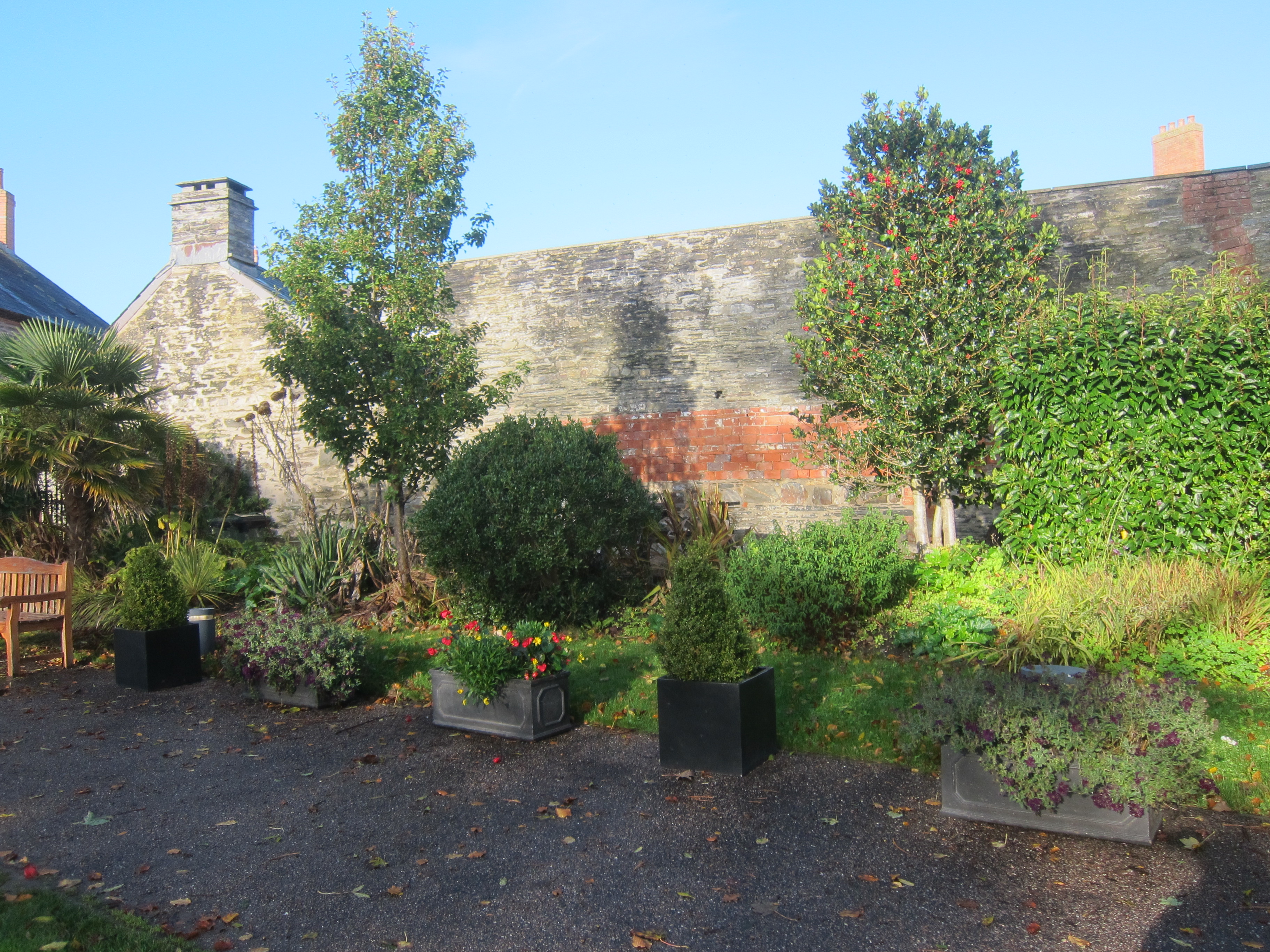 At this point the trail joins the cycle route and continues on a stony track for several miles, then a bit of road into Felindre, which has a best-kept village award, but sadly the only community pub/cafe was closed. A few yards further on, the path goes into the Macdonald Leisure Centre – it looked like a community of sheltered housing, but presumably is a holiday destination, as there is a pool and leisure centre. It said open to non-residents, so I went in to have a coffee. I went to reception and asked the girl behind the desk for coffee. She was apologetic – it was her first day and she did not know how to use the machine. The others were on their break. At that point, another staff member arrived. She thought the coffee machine needed to be cleaned first, but did not know how to do it. She called the other two staff members from their break – none of them knew how to use it – it seem a bit limiting to have four people, none of whom can use the coffee machine in a leisure club. One offered to make me a cup of instant, but I declined with thanks.