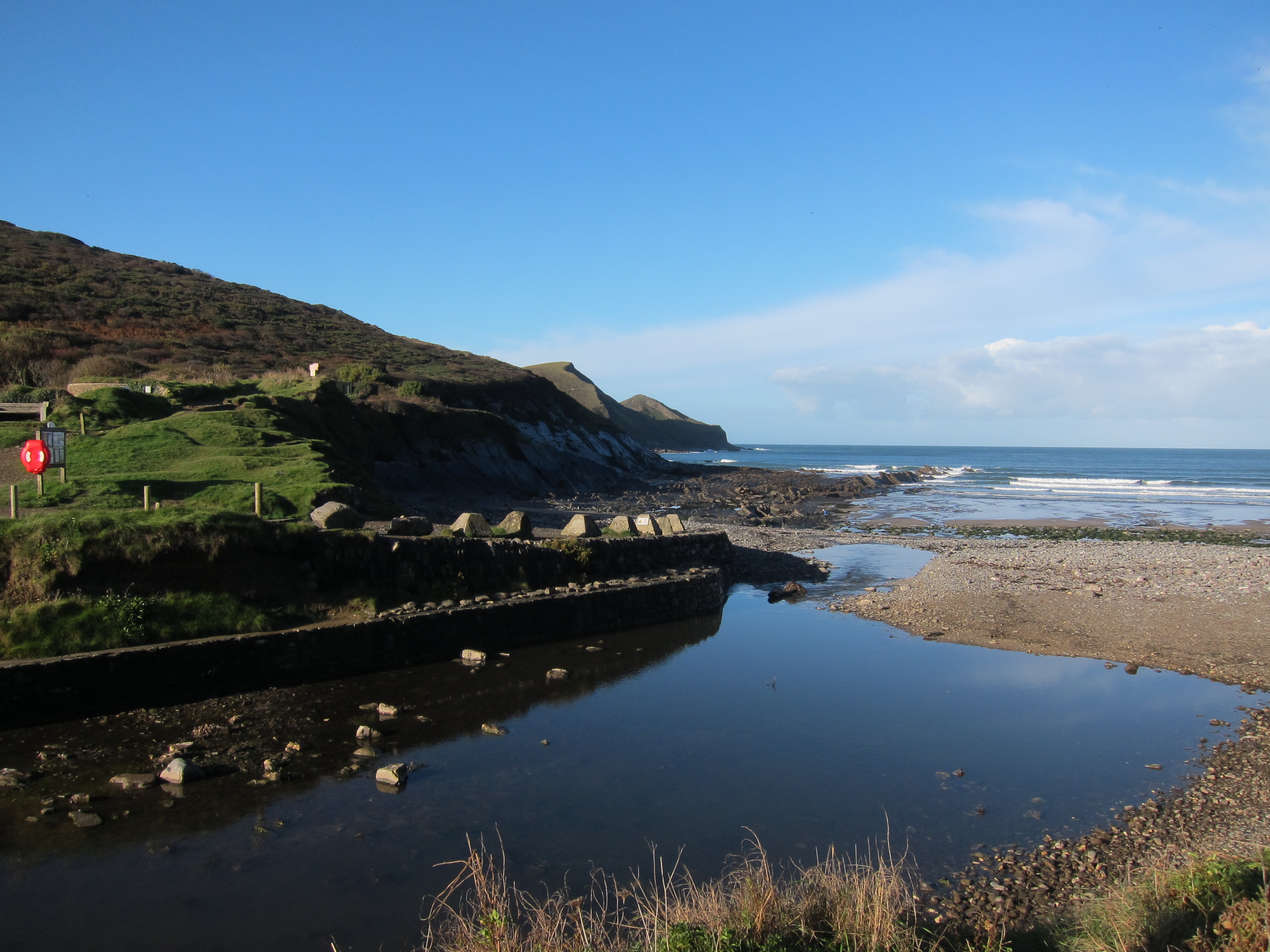 Above the long valley leading into Welcombe Mouth beach, we came to the writing hut of Ronald Duncan. I had never heard of him before, but Duncan was an important playwright and poet from the mid-twentieth century. Duncan was a pacifist and a conscientious objector, who, before the Second World War worked with Benjamin Britten, and is best known for writing the libretto to Britten’s ‘Rape of Lucretia’. During the war, he began a co-operative farm near Welcombe Mouth, although not with conspicuous success. His little hut, which must have taken huge grit to complete, as all of the stone would have had to be dragged up or down a precipitous slope, made a welcome retreat from the wind.