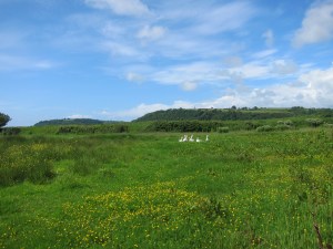 Ten minutes later, I started out, but before long I got lost in the hopeless maze of tracks that weave in and out of the wood, mainly designed for cycling. There was neither jot nor tittle of a sign, after the earlier section had been so clearly marked. After I while I was sure I was going in the wrong direction, so I whipped out my compass (when I say whipped, I mean I unpacked my entire rucksack to find it at the bottom). I was going south rather than north, so I turned around and took a different track, slightly reassured when some passing cyclists told me I was going in the right direction for Cydweli, but they did not mention it was a circular track. At least a mile and half further on, I finally came to T-Juncion with a sign. Coast Path – going in both directions. As I was consulting the map, a couple of locals came up and put me on the right path. She warned me about a field of cows. ‘Friendly or grumpy’, I asked, gripping my poles in business-like fashion.